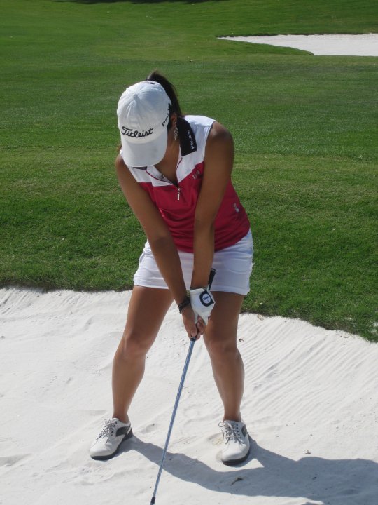 Pro V1 player Mina Harigae offers a textbook demonstration on how to establish a solid set-up for shots out of the sand.