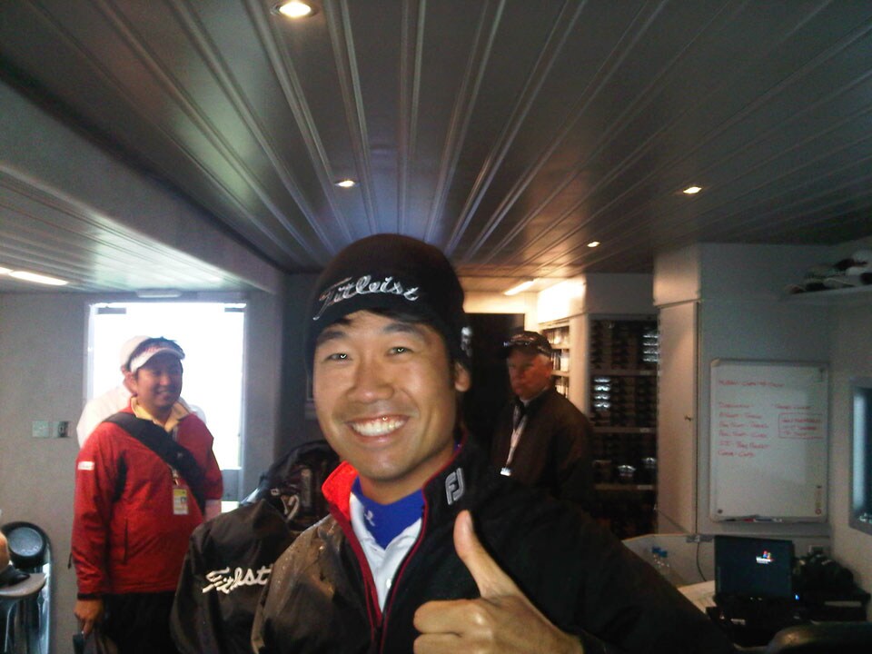 Kevin Na stopped by to grab a winter cap.