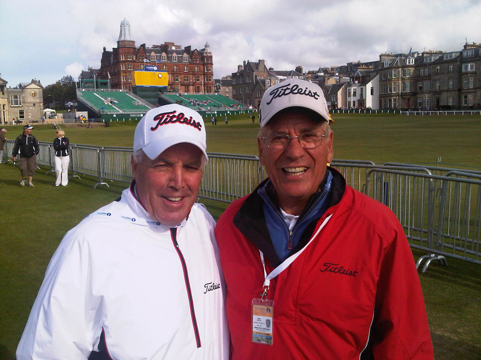 Acushnet Company Chairman & CEO Wally Uihlein and Bob Vokey enjoy a patch of good weather at The Old Course.