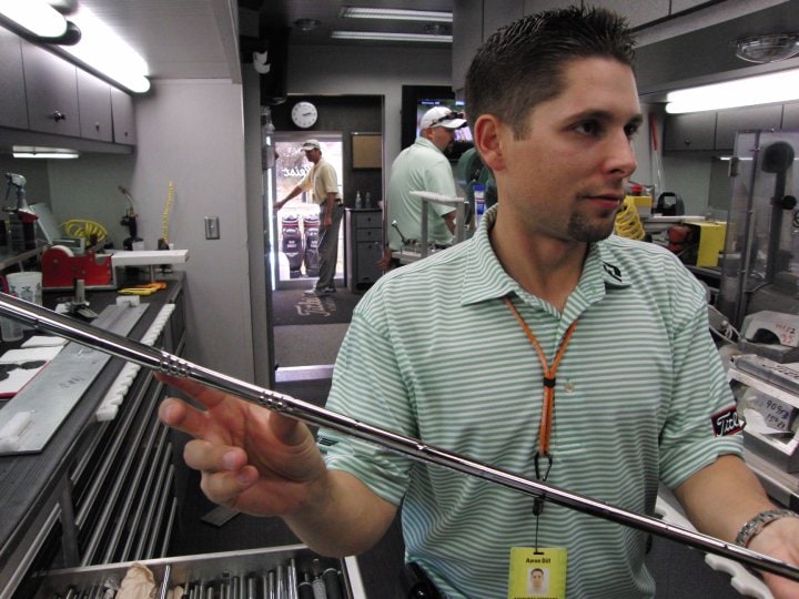 As Aaron explained to Spencer, the Spinner shaft features a unique section located beneath the grip that effectively decreases launch angles by as much as three degrees and simultaneously increases the ball’s spin rate by as much as 700+ rpm. This creates a wedge shot with a more penetrating ball flight for distance control and increased spin for greater stopping power on the green.