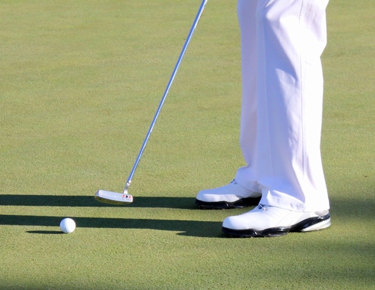 Nick rolls his Pro V1x golf ball with his Scotty Cameron Newport Fastback putter.