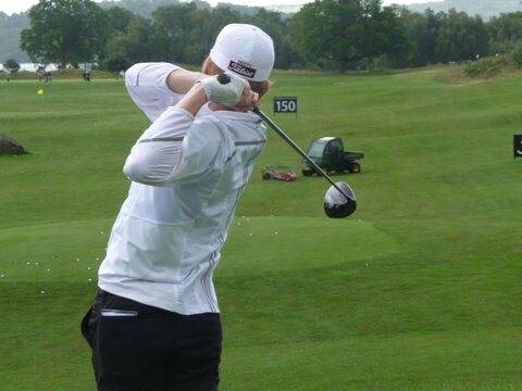 Andrew Dodt hits his new 910 on the range at Loch Lomond.