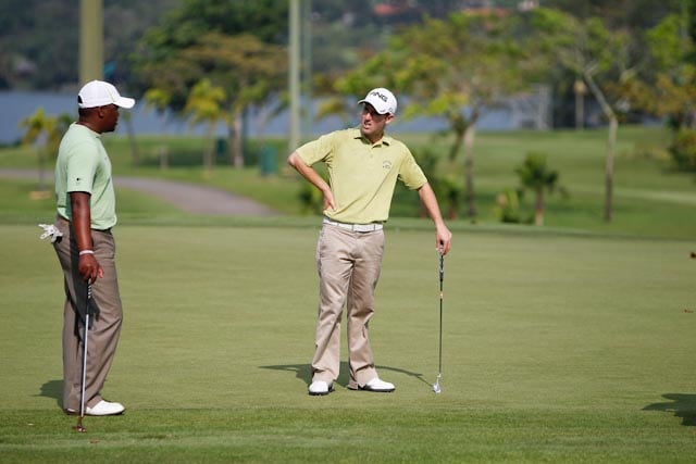 On our way there we spotted Titleist Pro V1 loyalist and defending champion Peter Karmis finishing his practice round.