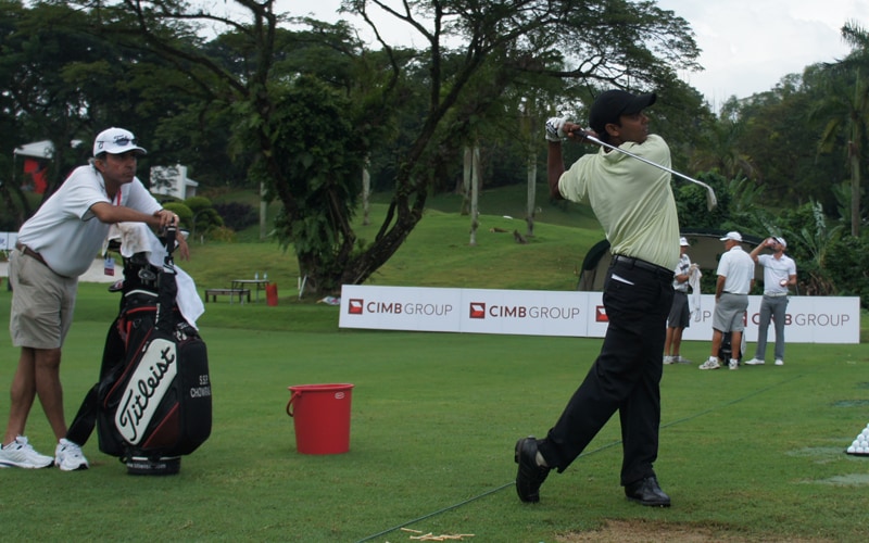 Titleist Pro V1X Loyalist S. S. P. Chowrasia hitting balls on the range.