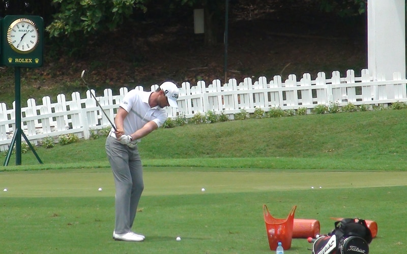 Kyle Stanley getting some chipping practice in. Kyle finished 34th in the Fed Ex Cup Standings this year, with his best finish being 2nd place at the John Deere Classic where he narrowly missed out to Steve Stricker following Stricker's amazing birdie on the final hole.