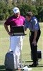 Pro V1x loyalist Kris Blanks tested out the new Titleist Pro V1x prototype golf ball Tuesday on the range with Titleist Tour Rep Fordie Pitts.