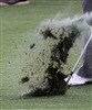 Staffer Romain Wattel tries something new on the putting green with his coach