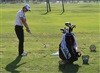 Titleist Brand Ambassador S.Y. Noh warms up for a late afternoon range session.