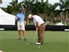 Titleist Brand Ambassadors Cameron Tringale (left) and John Merrick get in a putting session.