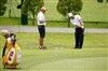 Scott Barr gets some chipping practice in while his caddy looks on.