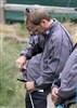 Titleist Tour Rep Chris Tuten makes a SureFit Tour hosel adjustment during a testing session with Titleist Brand Ambassador Bobby Gates.