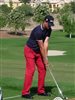 Defending Champion Robert Karlsson hitting some balls on the range.
