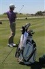 Titleist Brand Ambassdor Charley Hoffman has a laugh with his caddie on the range at TPC San Antonio.