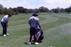 Staffer Seve Benson going through his putting drill - hit 10 balls to the square of tee pegs, each one going further than the previous! Must work!