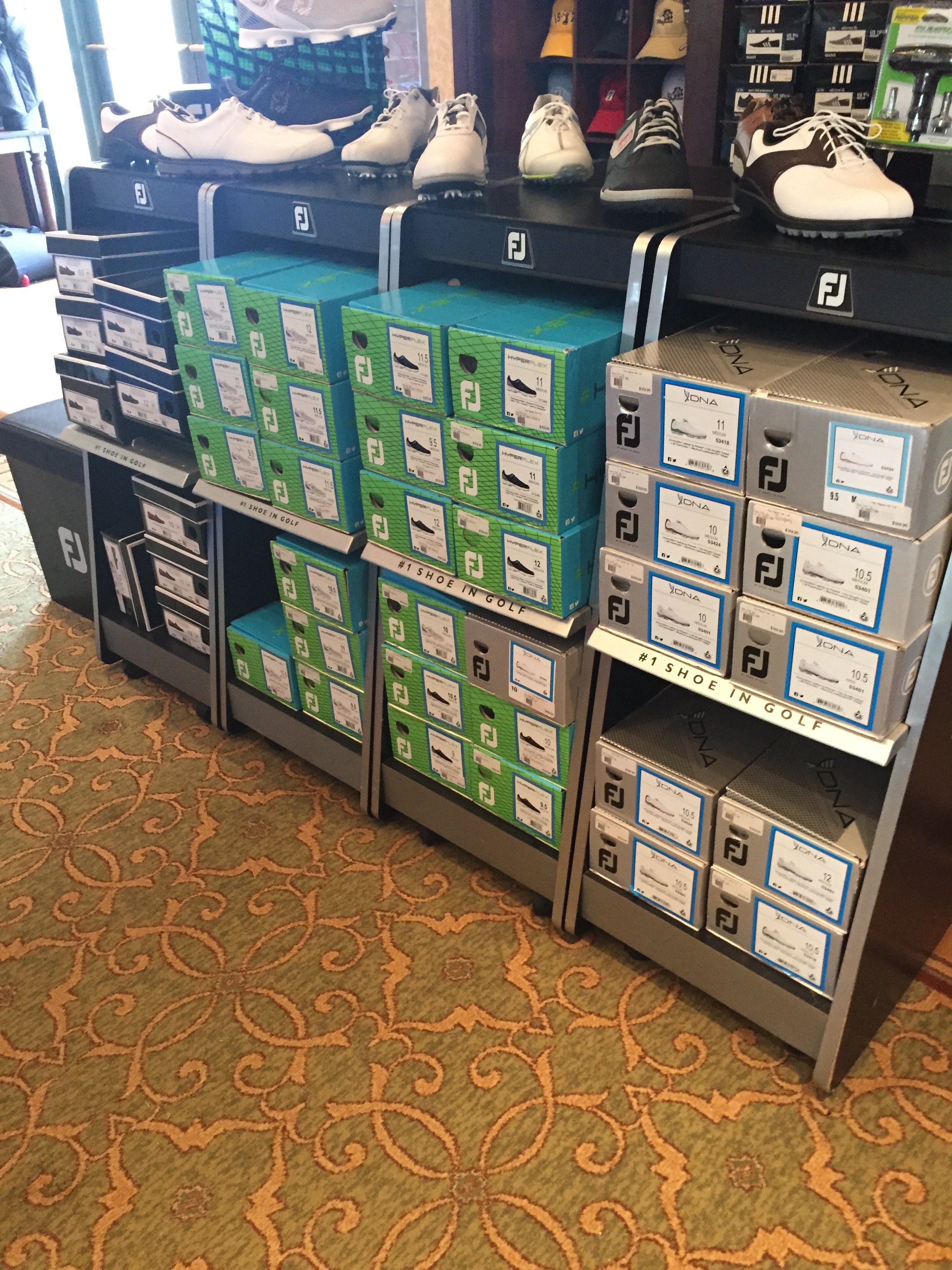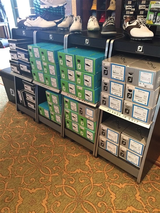 I had the chance to play Disney's Oak Trail with my 7 year old son last week - we had a great time. It was hot - high 90's, but that is July in Florida. Anyway, after the round, we went into the pro shop and I took a few photos of some of Titleist/FJ gear that they had in the store. Thought you might like to see: