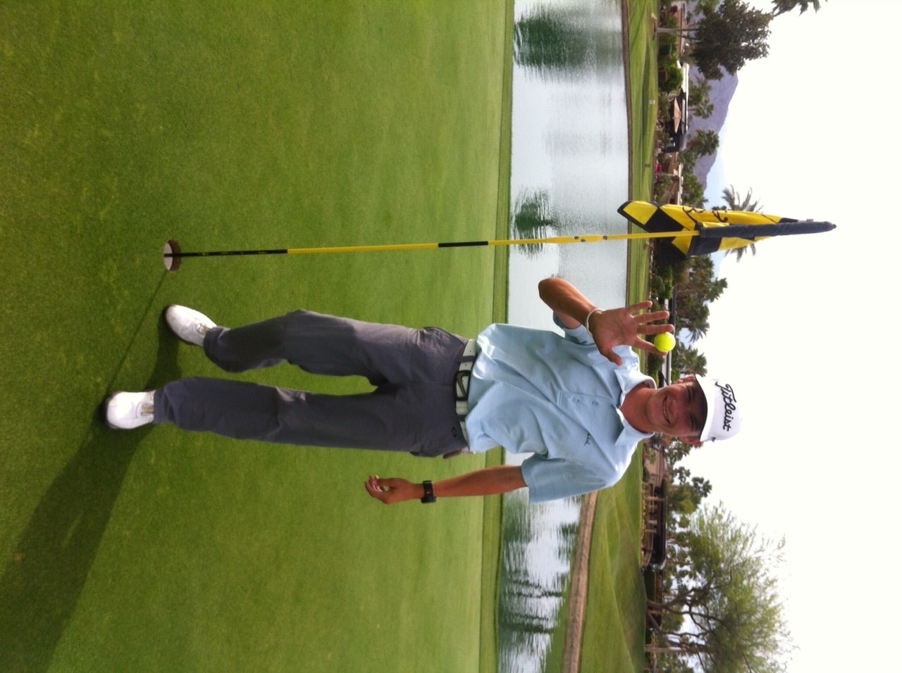 Just a little more than two months later on 3/29/13 golfing with his sister, Julia at Motorcoach Country Club in Indio, Ca, Justin hit a 52 degree Vokey wedge, on hole 5, 101 yards for his second Hole In One!! (With a yellow Titleist 4 DT solo!)