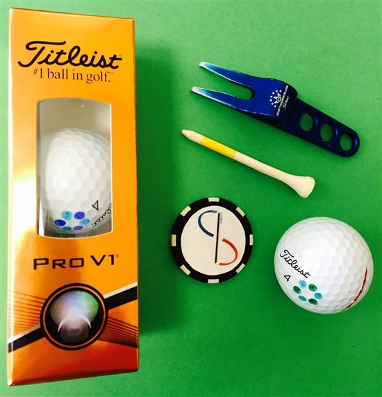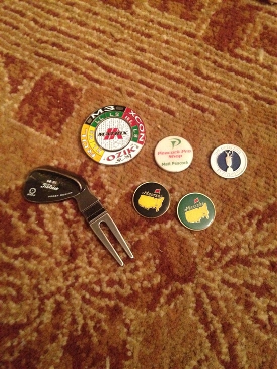 Otherwise a bunch of Titleist magnetic markers which are great because they are slim and flatten on the green nicely.