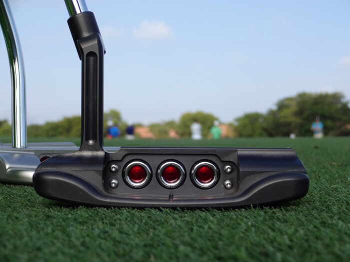In this photo of a Scotty Tour Rat you can really see the grain in these Bermuda greens. Notice how all the blades of grass near the putter head are leaning left?