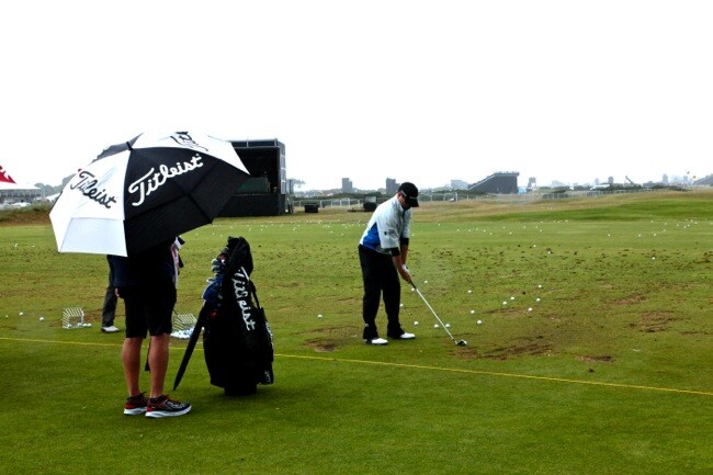 Back to the practice range. A little rain won't dampen Zach Johnson's warm-up.