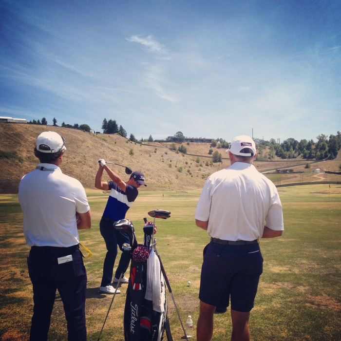 Back to the range and we catch up with Adam Scott as he gets in a few swings before heading out for a practice round.