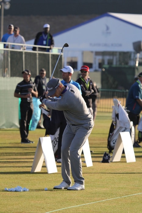 Morgan Hoffmann was on the range dialing-in his wedges...