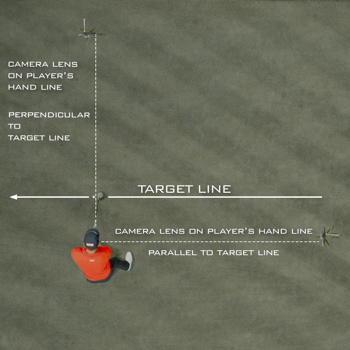 To record your swing effectively on video, it's important to position the camera properly for both Face-on and Down-the-line views. Always secure your camera for steady shots (an inexpensive tripod is a must) and remember to line up the lens of the camera with your subject (not the center of your mobile phone, for example).