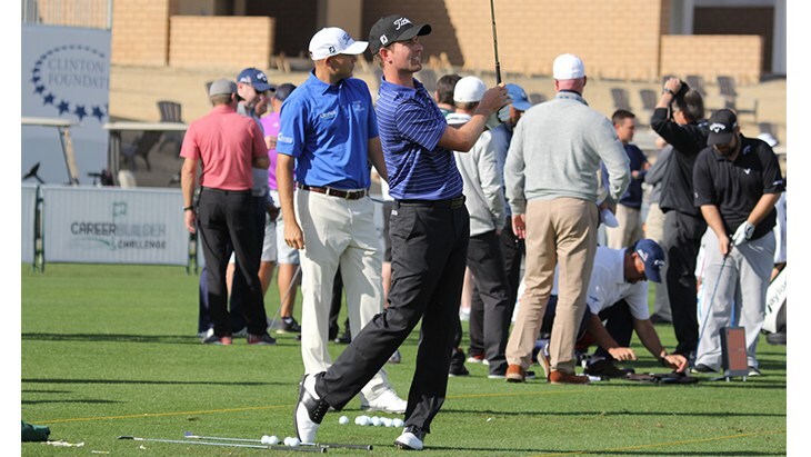 Titleist Brand Ambassador Webb Simpson watches a Pro V1x climb skyward.