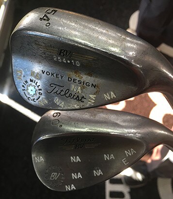 Vokey wedge tour representative Aaron Dill customized Kevin's short game clubs, a Spin Milled 54° sand wedge and a Vokey 60° prototype lob wedge.