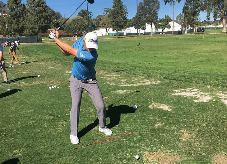 We snapped this photo earlier this week as Bernd warmed up before a practice round at Riviera...
