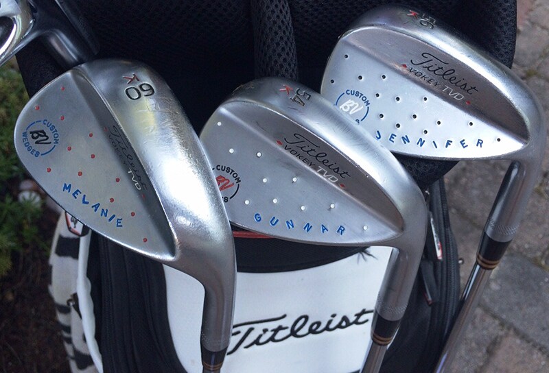 ...including his custom Vokey TVD K-Grinds. Did you notice that he games both a 54° and a 56° sand wedge? Now that's precise distance control!
