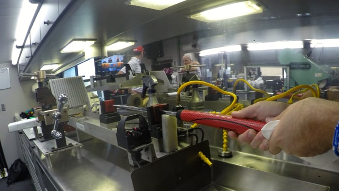 Back inside the Tour Van the team gets to work on a quick regrip.