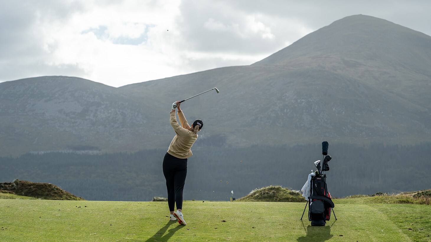 Olivia, the fourth member of our validation group, hits a towering iron approach with her 388 proto. “I tested Pro V1. It felt really nice around the greens and it seemed to last a lot longer than usual - it’s very durable.”