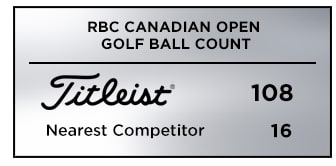 And as players make their bids to take home Canada's major, Titleist is the overwhelming top choice in the field with 108 players trusting a Titleist Pro V1 or Pro V1x golf ball for their success. That's more than six times the nearest competitor with 16 and more than all competitors combined.